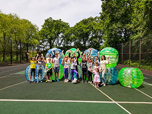 Человек помещается в шар, сжимается комочком, расклинившись и крепко держась за ручки внутри бампербола, после чего пара-тройка человек дружно катает его по всей площадке. А в общем можно делать всё, что заблагорассудится, кувыркаться, толкаться и даже стоять на голове.