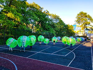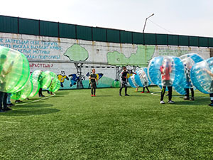 Участники разделяются на две команды и как в обычном футболе, забивают мяч в ворота противника. Обычно в одной команде 3-6 человек. Здесь нет аутов, офсайдов и пенальти, а главное - вместо формы, все игроки одеты в надувные шары. В погоне за мячом игроки толкаются, делают всевозможные трюки и просто дурачатся от души))